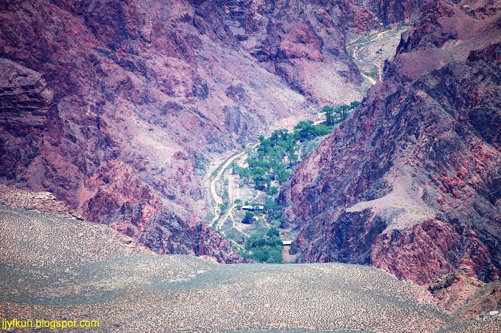 下面相片中间一小片看起来有点黄浊的是大峡谷的‘雕琢师’——科罗拉多河(Colorado River),下次再作介绍。